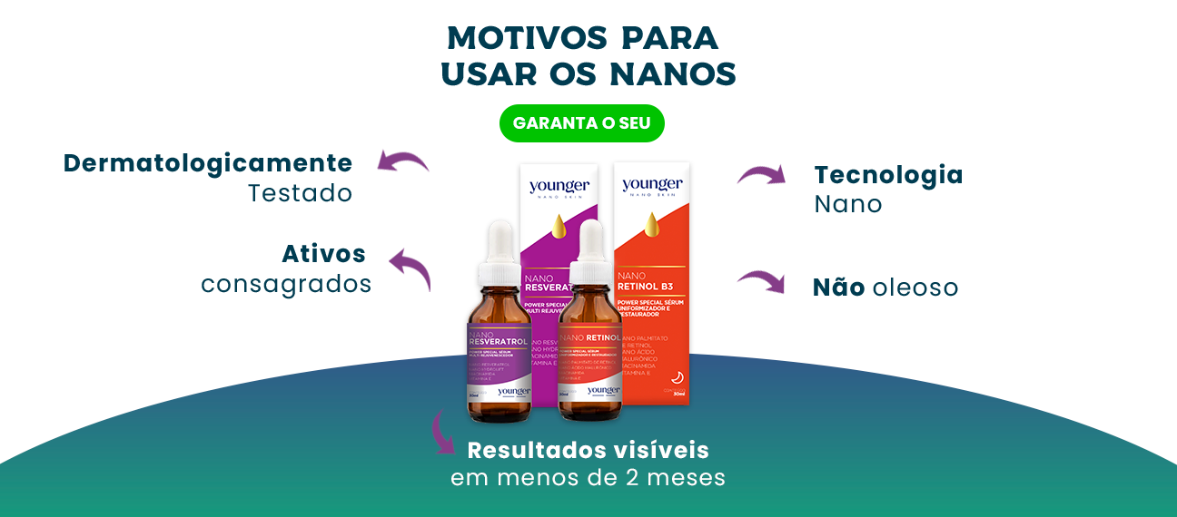 A linha Younger Nano Skin consegue através da nanotecnologia atingir as camadas mais profundas da pele, prevenindo e combatendo os sinais de envelhecimento.