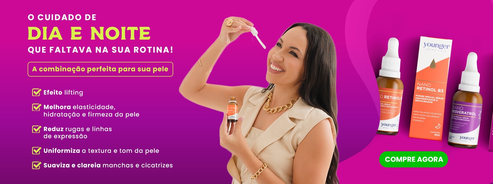 Os séruns Younger Nano Skin são a dupla perfeita para deixar sua pele mais firme, uniforme e sem manchas!